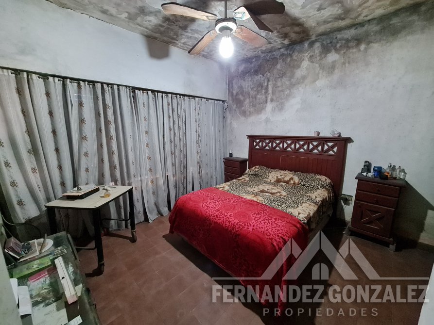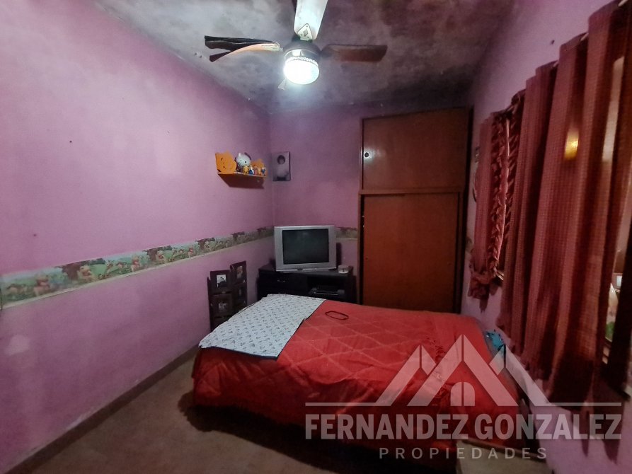 Cuanta con entrada para autos cubierta con portón de ingreso de madera, Living al frente con hogar a gas y pisos cerámicos, Primer dormitorio al frente con pisos de mosaico, ventanal al frente y placard empotrado, segundo y tercer dormitorio con pisos de mosaico; baño completo con ante baño y revestido en cerámicos, cocina comedor diario con muebles completos en ele; gran comedor con vista al patio y cielorraso en madera. Patio propio con parrilla y atrás cuenta con construcción de galpón o deposito.
