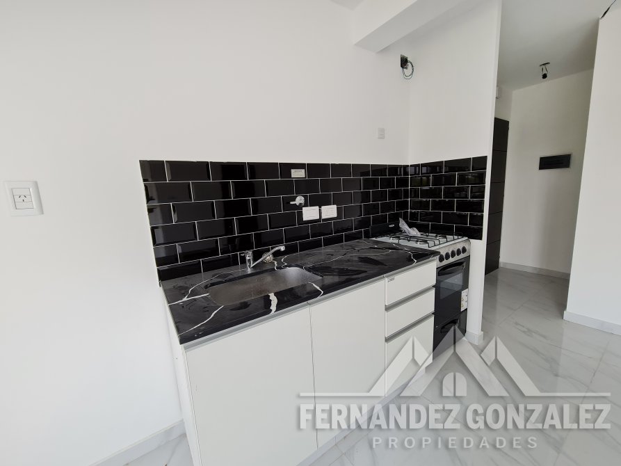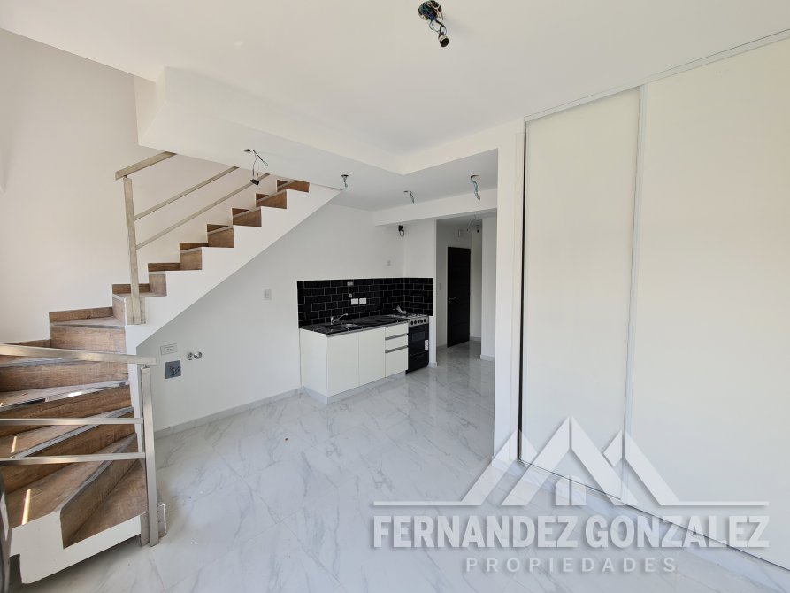 Departamento a estrenar que consta de un ambiente único integrado, donde se desarrolla la cocina comedor con muebles bajo mesada, conexión para lavarropas; Sector de dormitorio (divisible) con frentes de placard empotrado; Baño completo con bañera; y escalera de acceso a patio terraza de uso exclusivo que cuenta con 20M2 exclusivos.