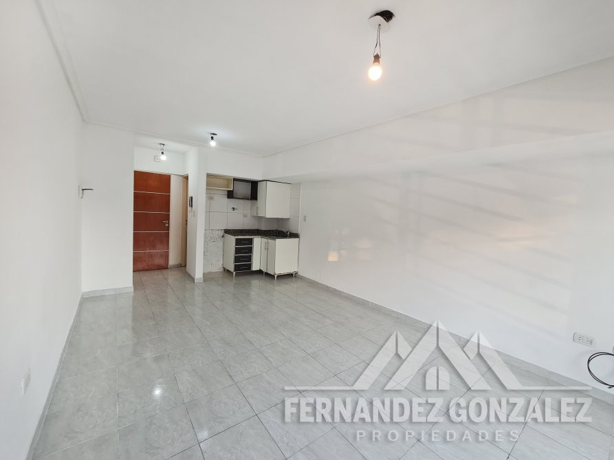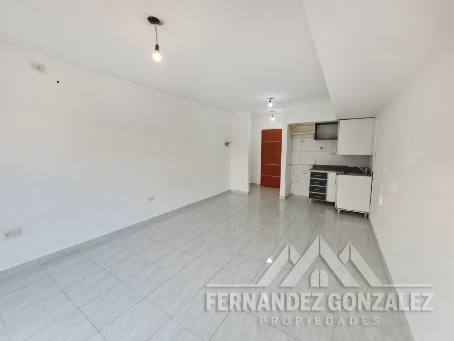 Se trata de un departamento en primer piso por escalera que cuenta con un ambiente único que integra cocina con muebles completos, conexión de gas natural para cocina (no incluida), pisos cerámicos, dormitorio inegrado, gran ventanal con balcón francés y vista al frente; baño completo con bañera.