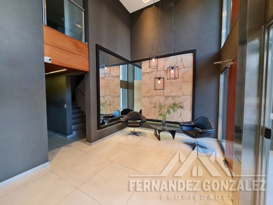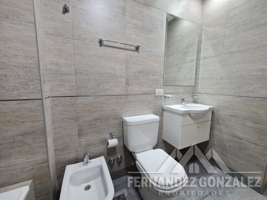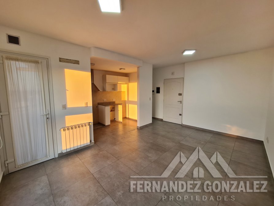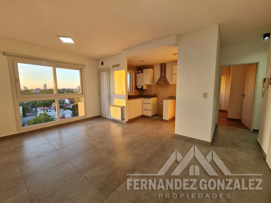 Cuenta con puerta de acceso al departamento blindada, Living comedor al frente con pisos de porcelanato, portero visor con monitor, salida a balcón; Cocina integrada con muebles bajo y sobre mesada, campana de acero inoxidable con extractor, conexión para lavarropas y doble mesada de mármol con bacha de acero y canilla monocomando; Dormitorio con piso flotante, placard empotrado con frente e interiores completos; Baño completo con vanitory colgante, bañera, ventana de ventilación, sanitarios Ferrum y grifería FV.
