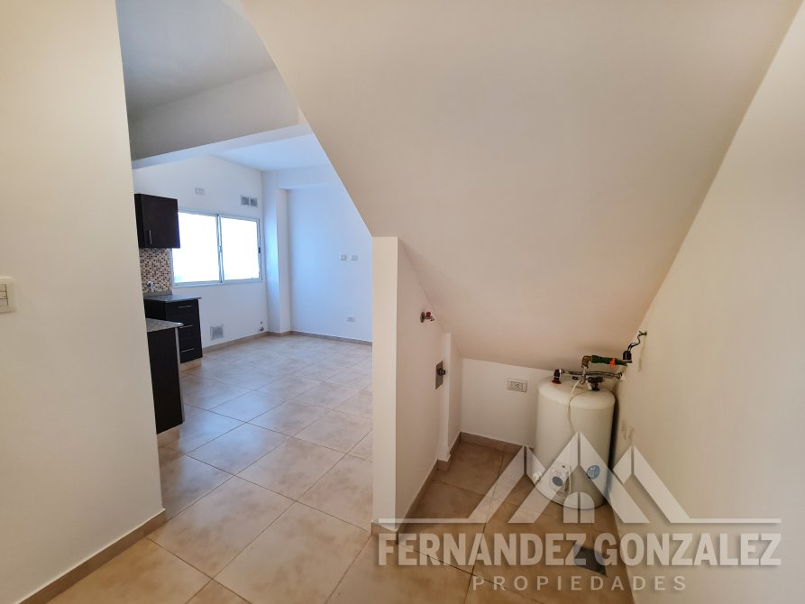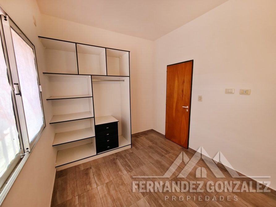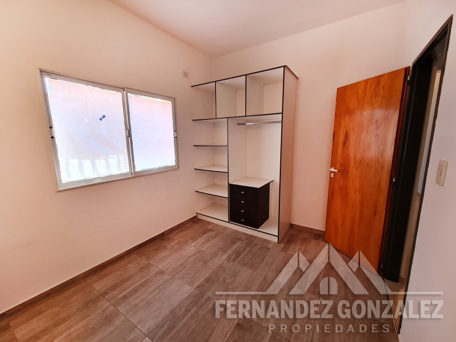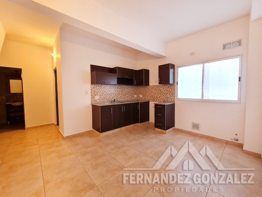 El departamento se desarrolla en planta baja, es la primera unidad al frente, consta de cocina comedor diario (5,00 x 4,20) con muebles bajo y sobre mesada, conexión para lavarropas; dormitorio (3,30 x 2,70) con pisos cerámicos y placard; baño (1,60 x 2,00) completo con vanitory y bañera.