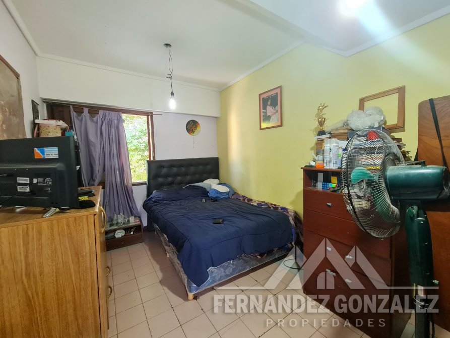 Garage cubierto para dos autos que puede utilizarse como quincho y gran fondo libre.