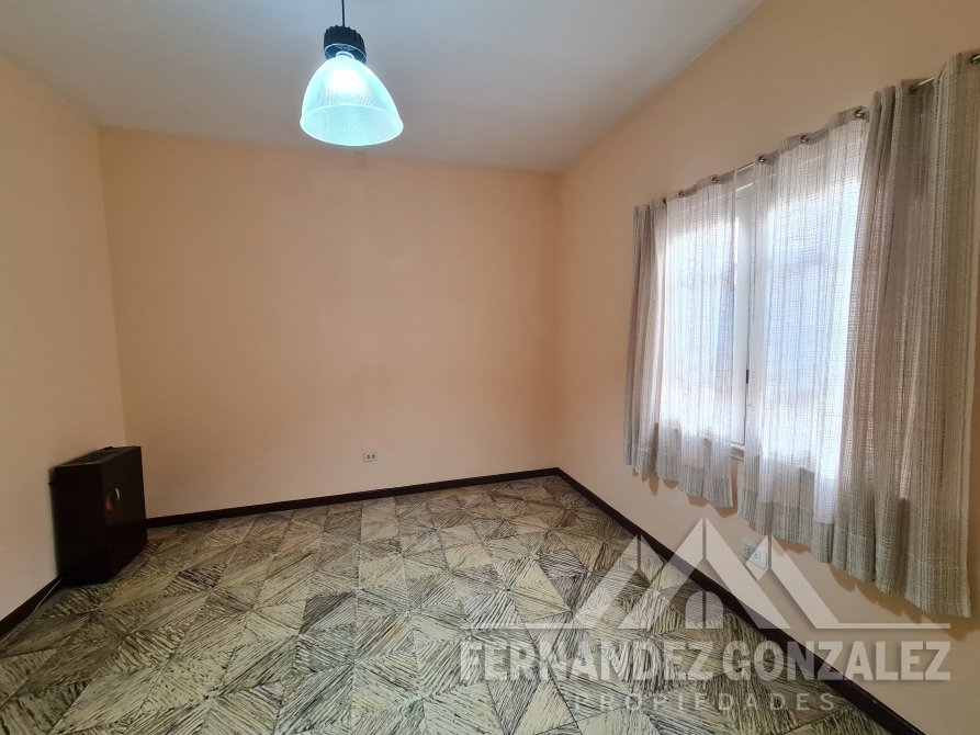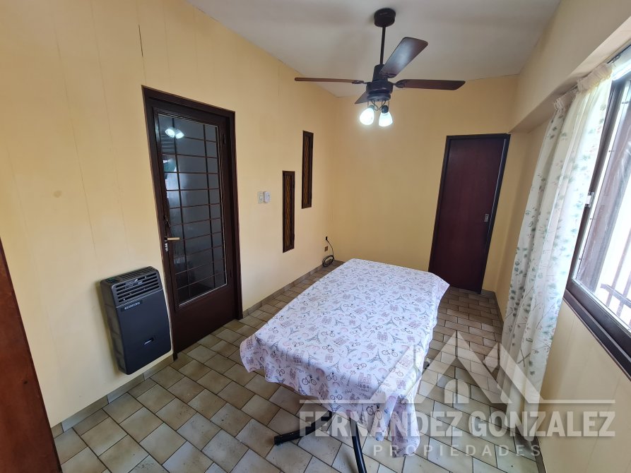 Consta de jardín al frente con rejas perimetrales, entrada para un vehículo, ingresando nos encontramos con la galería cubierta, que puede funcionar como gran estar comedor, a continuación cuenta con cocina comedor diario con muebles completos, aire acondicionado, dos dormitorios (4,00 x 4,00 mts.) con pisos de pinotea, uno de ellos al frente y el otro con vista a la galería de ingreso, escritorio o tercer dormitorio con placard, baño completo y alacena de guardado, donde puede construirse un segundo baño.