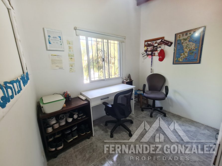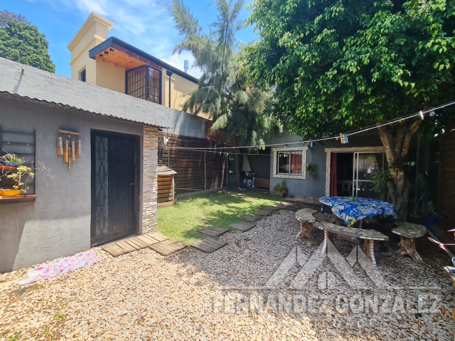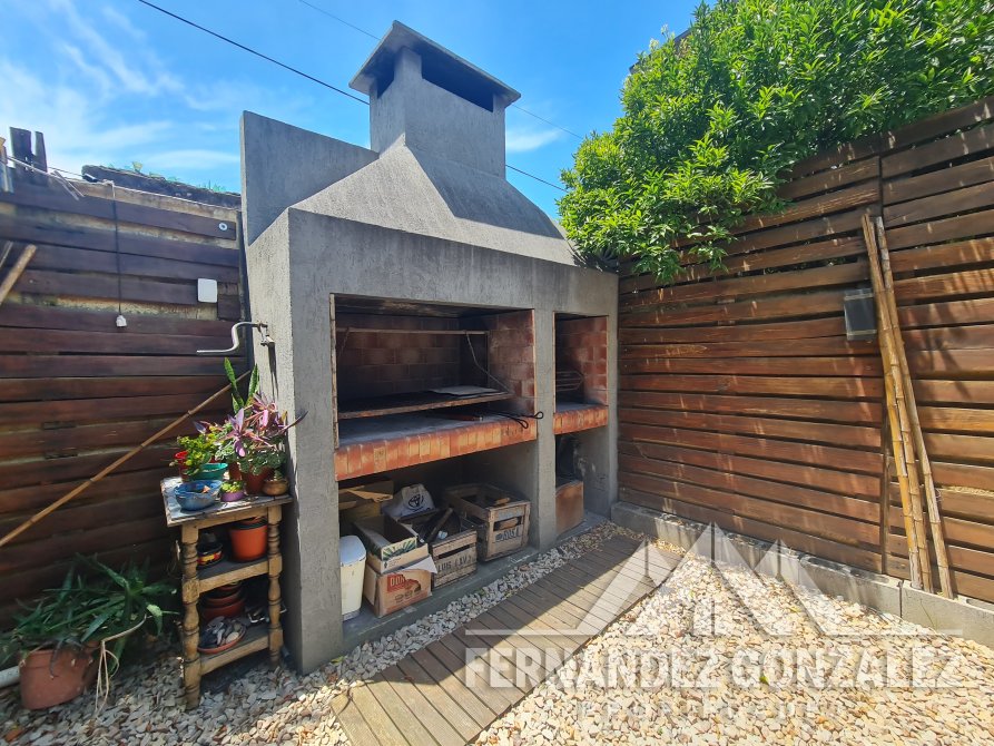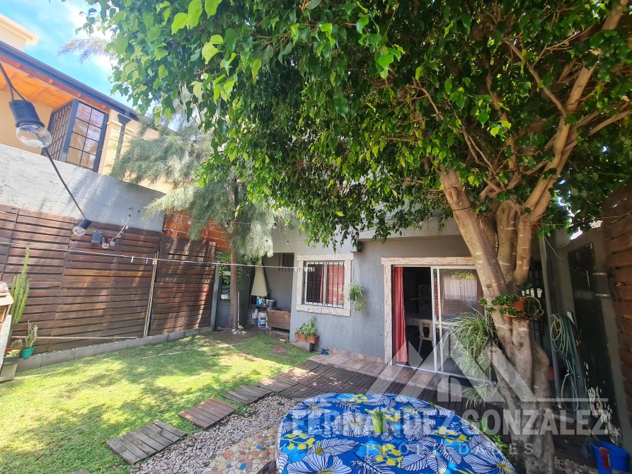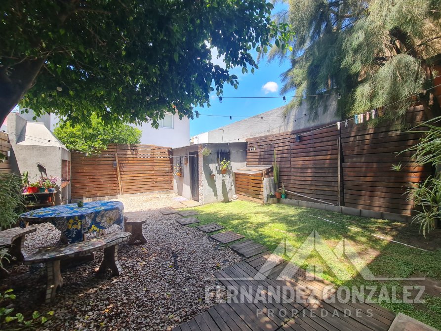 Atrás cuenta con un hermoso patio con espacio verde, arbolado con parrilla y galpón de guardado con lavadero incorporado.