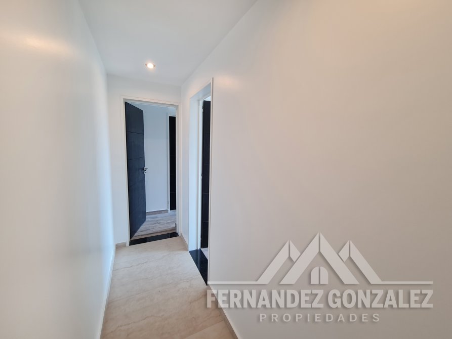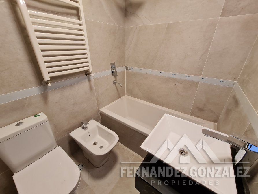 Cuenta con palier propio; Living comedor con puerta blindada, pisos de porcelanato y balcón al frente; baño de servicio; Cocina independiente con cocina, campana, caldera y salida a segundo balcón. Distribuidor; Dormitorio Principal en suite, con baño completo y balcón; otros dos dormitorios con placard y salida a balcón. Segundo baño con bañera.