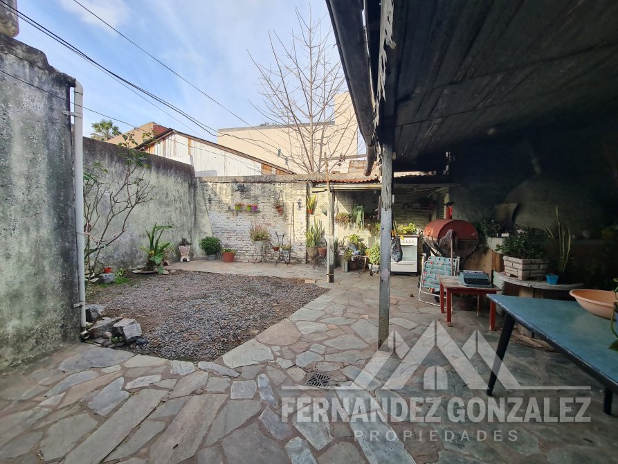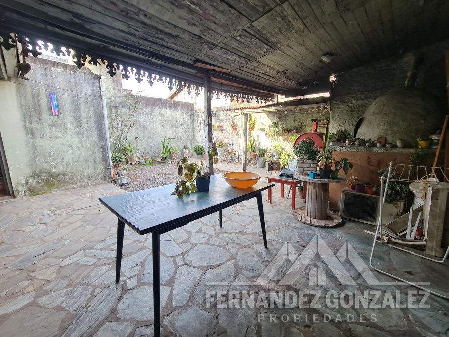 Patio con fondo libre, galería semicubierta con horno de barro y garage cubierto con baño de servicio y segundo patio.